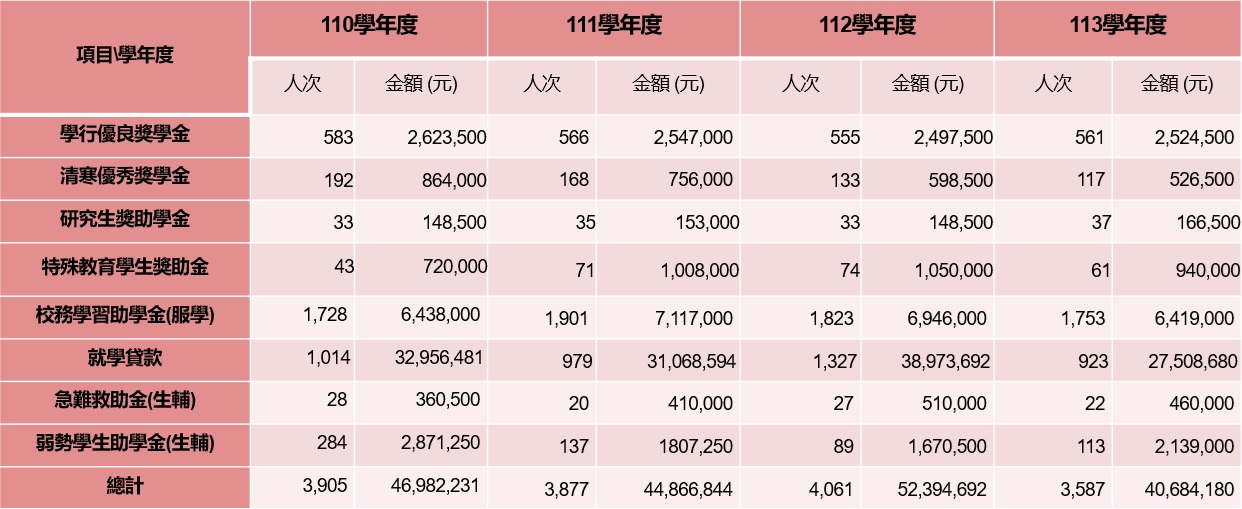 二、在校生申請就貸/獎助學金/學雜費減免之金額、人數